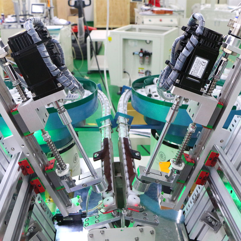 • 產品簡介: 加油泵是一種小型加油產品,應用廣泛。一般加油泵的泵體外部設有運輸帽,(安全閥),由人工完成比較費時、費力,生產效率比較低,加工有一定的難度,并且工作時不太穩定,而且還會出現旋緊力不均等問題。為此廠家會考慮到自動生產組裝機器完成此類操作。 飛速自動化廠家按照客戶要求根據產品進行設計一臺加油泵全自動組裝螺母螺帽機,能夠替代人工放置運輸帽緊固,可以達到提升組裝運輸帽工作效率的自動化上送膠蓋設備。產品為加油泵運輸帽,每個產品需按照兩個膠蓋,設備要實現兩顆螺帽安裝至產品上,并且能夠一步到位精確度高,為此將設備設計為傾斜自動鎖付平臺,這樣比較方便產品安裝螺帽工序,再設備兩側設立兩臺振動盤自動送螺帽,然后將無序工件自動有序定向排列整齊、準確地輸送到下道工序將膠蓋吸附至工件上進行相同的扭力矩旋轉安裝,工作時,整個安裝螺母螺帽工作過程人工只需將工業產品的待安裝的工件放在再設定固定的工位上,設備就能自動完成后續的組裝螺帽過程。設備設計巧妙、結構合理。設有自動安裝螺帽程序,自動輸送螺帽由振動盤裝置供料,振動盤能夠講螺帽自動排列 送至安裝接口上,全自動組裝機替代了以往需人工放置緊固件的工序部分,減少了工作強度,降低對人工技能的熟練程度的依賴,節約了時間,達到提升安裝螺母螺帽工作效率目的。